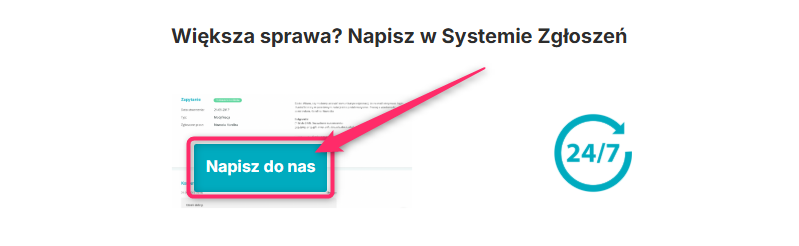 Po dokonaniu wszelkich niezbędnych formalności z Espago napisz do nas zgłoszenie przez system zgłoszeń. W tym celu na górnej belce w systemie wybierz ikonę chmurki ze znakiem zapytania –> przycisk „Napisz do nas”:
