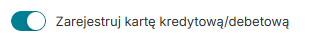 Jeśli dodatkowo chcesz zarejestrować kartę kredytową klubowicza, zaznacz suwak „Zarejestruj kartę kredytową/debetową”: